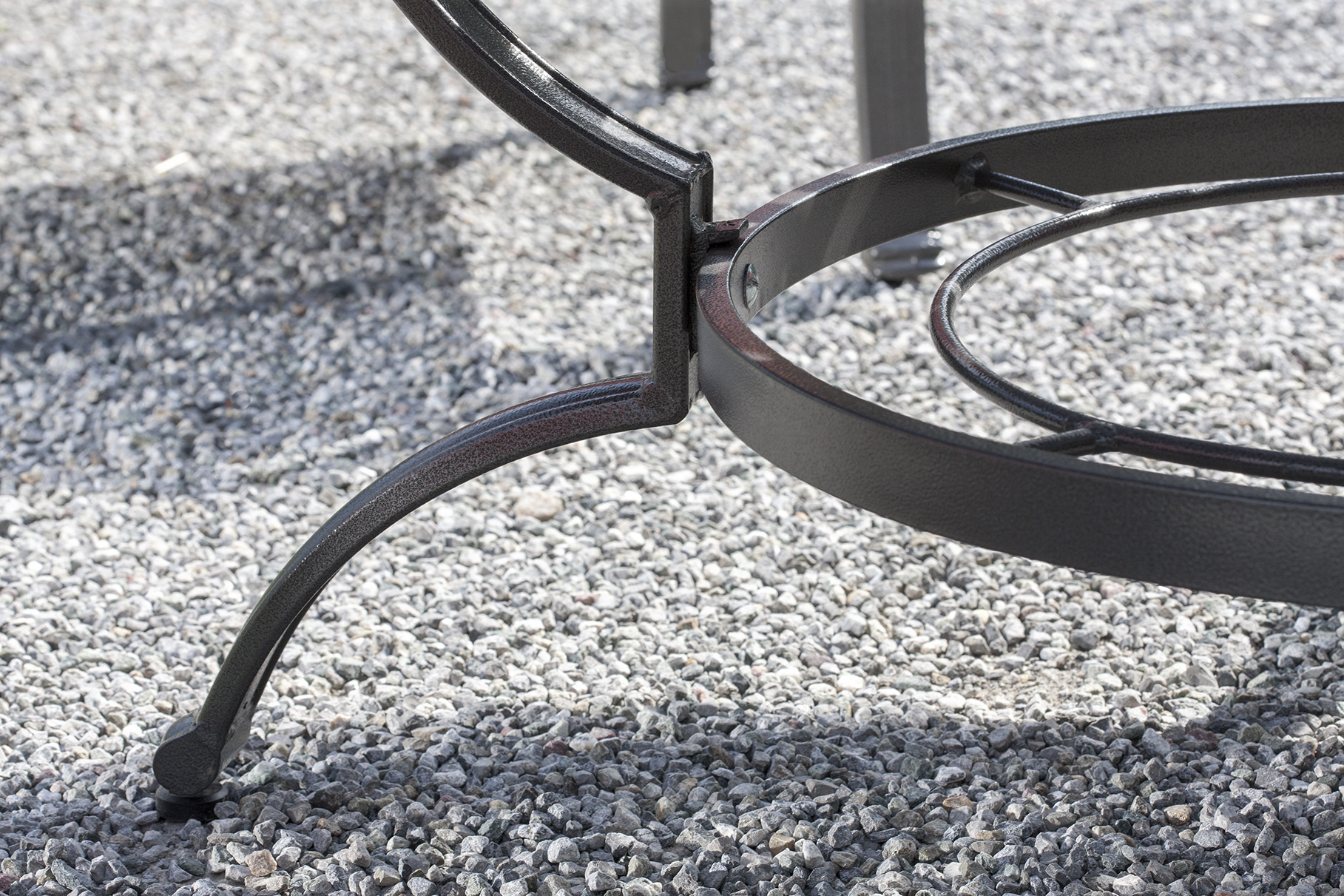 Der Tisch und die Sessel sind in einem eleganten Anthrazitton pulverbeschichtet, was nicht nur für eine edle Optik sorgt, sondern auch den Schutz vor äusseren Einflüssen erhöht. Aluminiumguss ist besonders robust und widersteht selbst anspruchsvollen Witterungsbedingungen mühelos.
