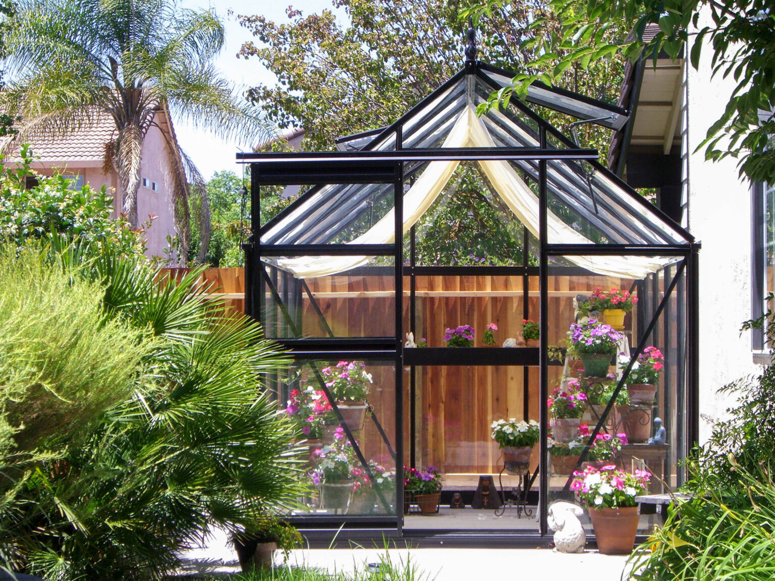 Der EOS Junior Modell ist das Lieblingsmodell der Anfänger. Die steile 38°-Dachlinie und die schlanken Profile verleihen diesem Modell ein klassisches englisches Aussehen. Der optionale viktorianische Dachfirst verleiht ihm einen romantischen Touch. Wenn Sie dieses Gewächshaus an die Wand stellen, ist der Look komplett.