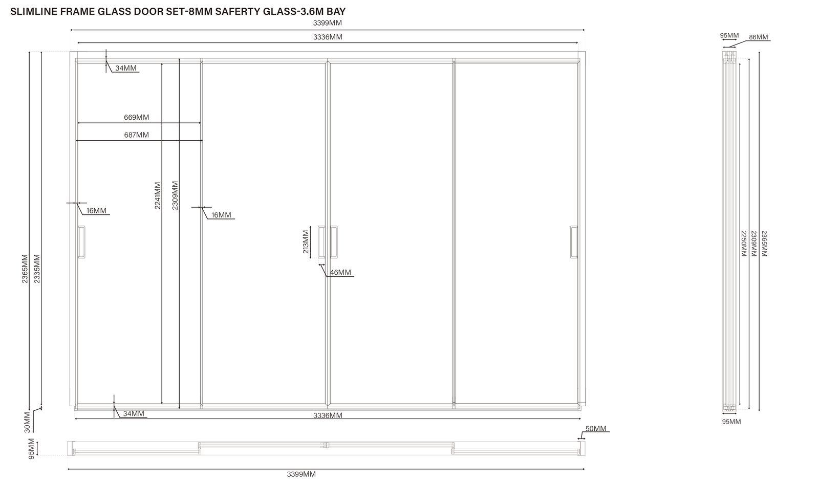 - 4,00 m Breite: für 4,00 m Pergola-Seitenlänge – 4 × 0,90 m Glaspaneele