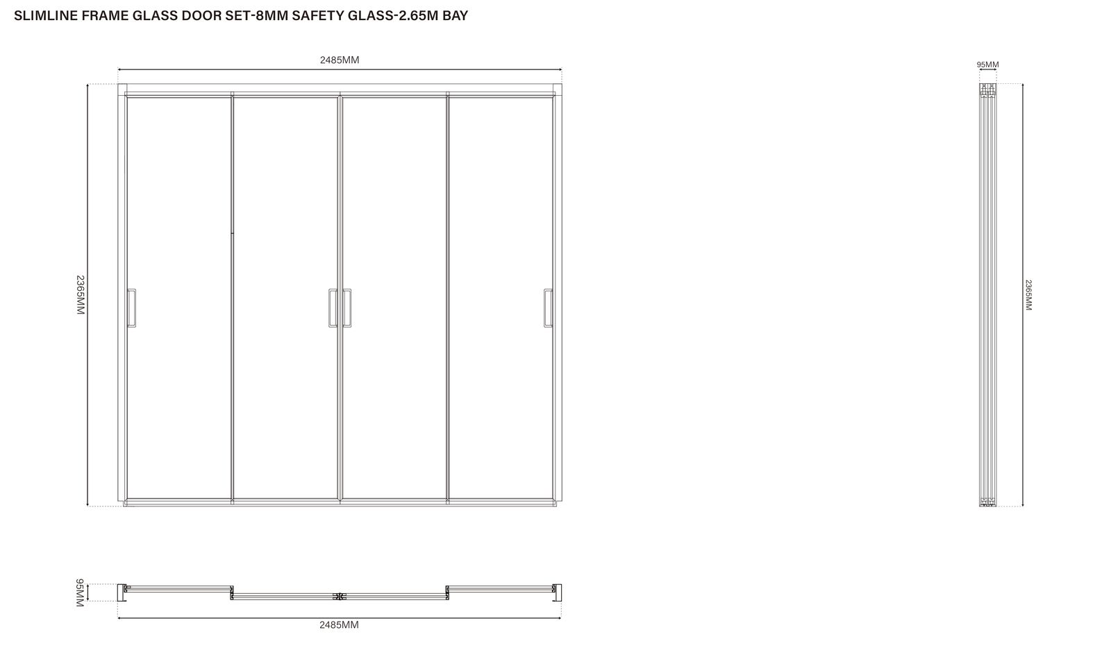 - 2,65 m Breite: für 2,65 m Pergola-Seitenlänge – 4 × 0,59 m Glaspaneele