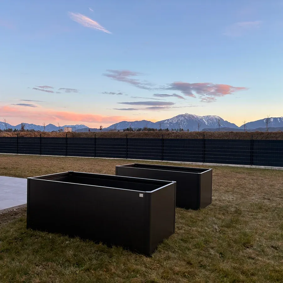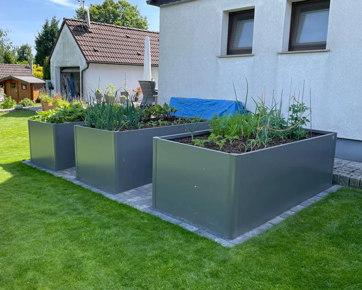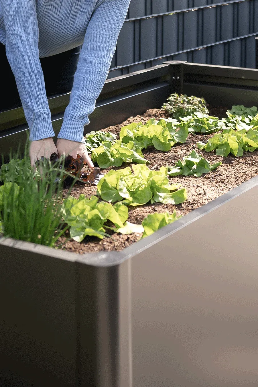 Das für die Seitenteile verwendete, feuerverzinkte Stahlblech mit aufwändiger Polyamid-Einbrennlackierung überzeugt optisch mit schlichter Eleganz. So ist unser Biohort HochBeet- Bausatz in jedem Garten ein attraktives Gestaltungselement.