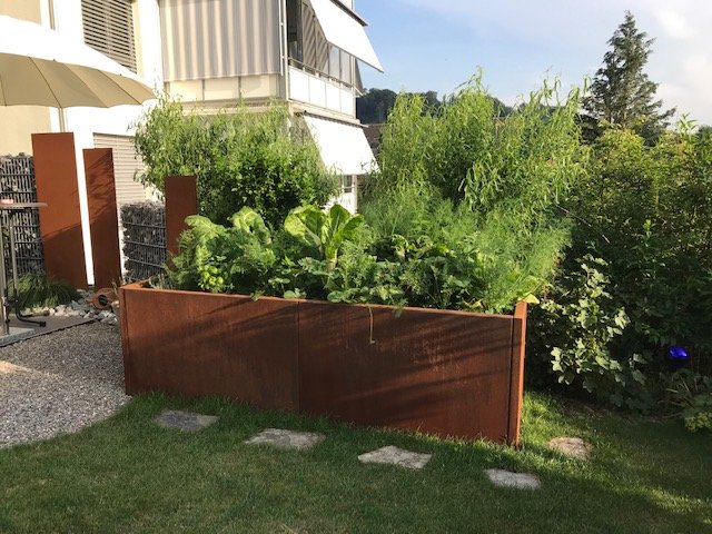 1. Hochbeet Cubus roh – rostend