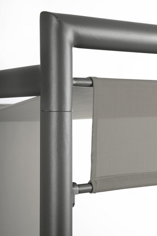 • das Schiebedach ist aus einem Outdoor-Polyesterstoff (Textilene) hergestellt und ist in drei Positionen verstellbar